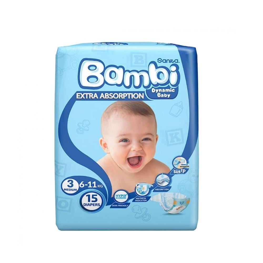 حفاضات بامبي للأطفال مقاس 3 وسط 6-11 كج من سانيتا - 15 حفاضة