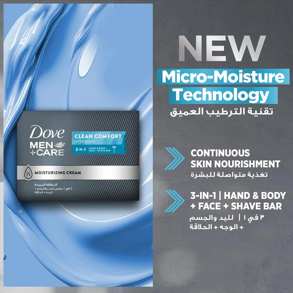 صابون دوف متعدد الاستخدامات، مناسب للاستخدام اليومي على اليدين، الجسم، الوجه وحتى أثناء الحلاقة. يعمل على تنظيف البشرة بلطف دون تجفيفها، ويتركها ناعمة ومرتاحة.