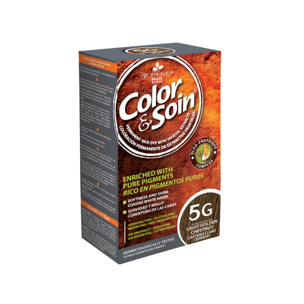 صبغة شعر دائمة من كولور آند سوان بدرجة كستنائي ذهبي فاتح (5G)، تمنح شعرك لونًا غنيًا وطبيعيًا مع لمسات دافئة من الذهبي. تركيبة لطيفة على الشعر، تحتوي على مكونات مغذية للحفاظ على صحة الشعر ولمعانه أثناء وبعد التلوين.