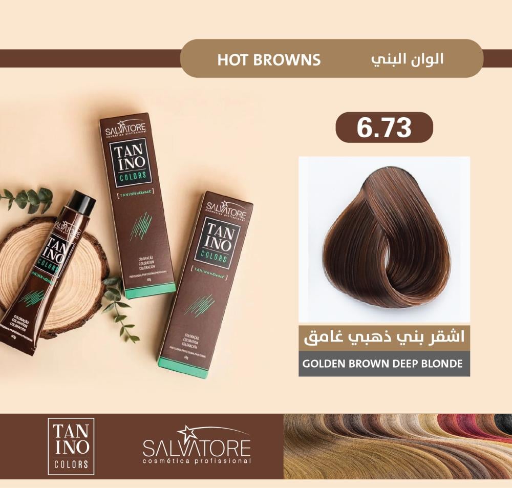 - لون أشقر بني ذهبي غامق 6.73: مزيج رائع من الأشقر والبني مع لمسة ذهبية غامقة، مما يمنحكِ لونًا غنيًا ودافئًا.
