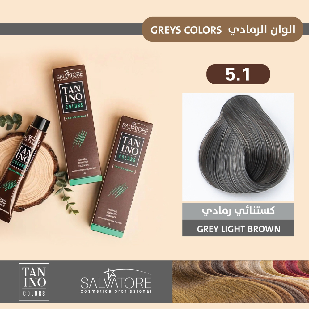 صبغة سيلفاتوري بلون كستنائي رمادي 5.1 تمنحكِ درجة لونية غنية تجمع بين لمسة دافئة من الكستنائي مع لمعة باردة من الرمادي. هذا اللون مثالي لمن ترغب في الحصول على توازن بين الدفء والبرودة، مع إطلالة طبيعية وعصرية، فهو يضيف عمقًا وحيوية للشعر مع لمسة رمادية باردة.