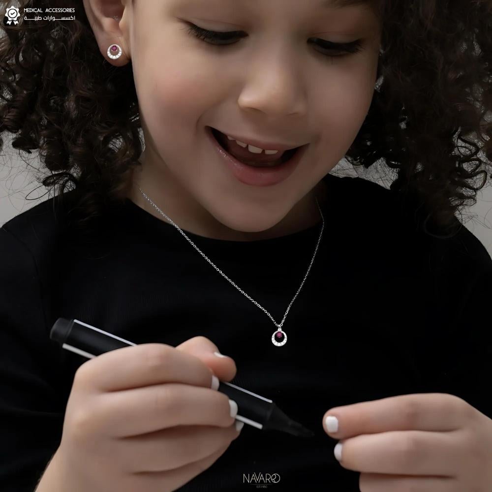 طقم سلسال وأقراط الفضي الطبي من نافارو: