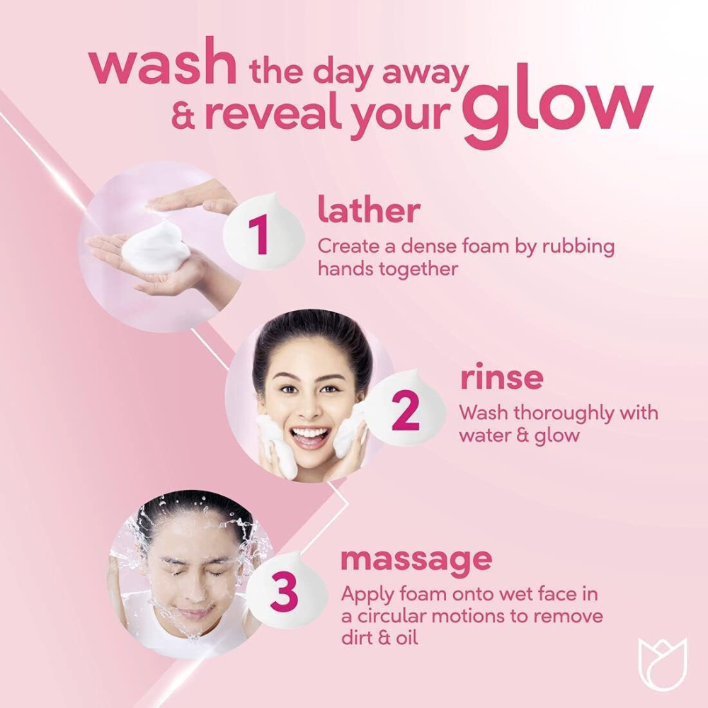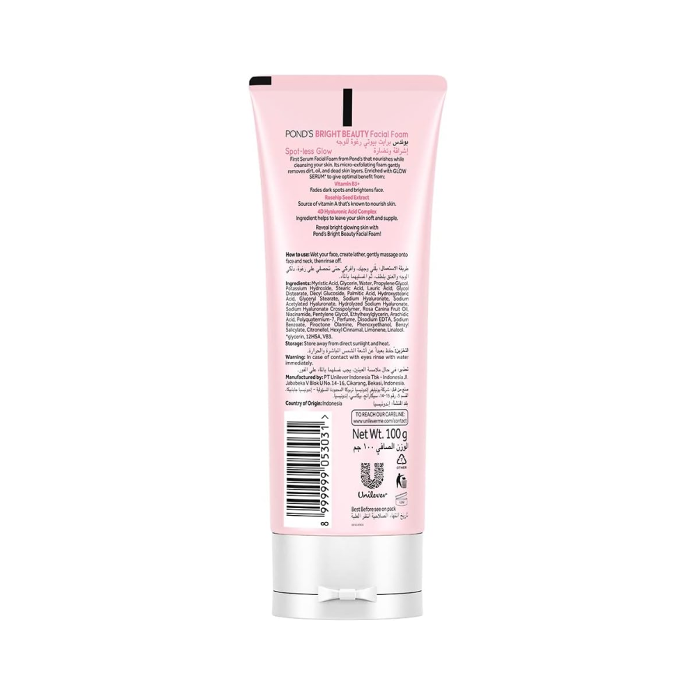 غسول رغوي لطيف وفعّال يساعد في تنظيف البشرة بعمق مع تفتيح فوري ومظهر صحي أكثر إشراقًا. تركيبة بوندس وايت بيوتي الوردي مدعمة بفيتامين B3 المعروف بقدرته على توحيد لون البشرة وتقليل البقع الداكنة، مما يمنحك بشرة ناعمة، نضرة ومشرقة مع كل استخدام.