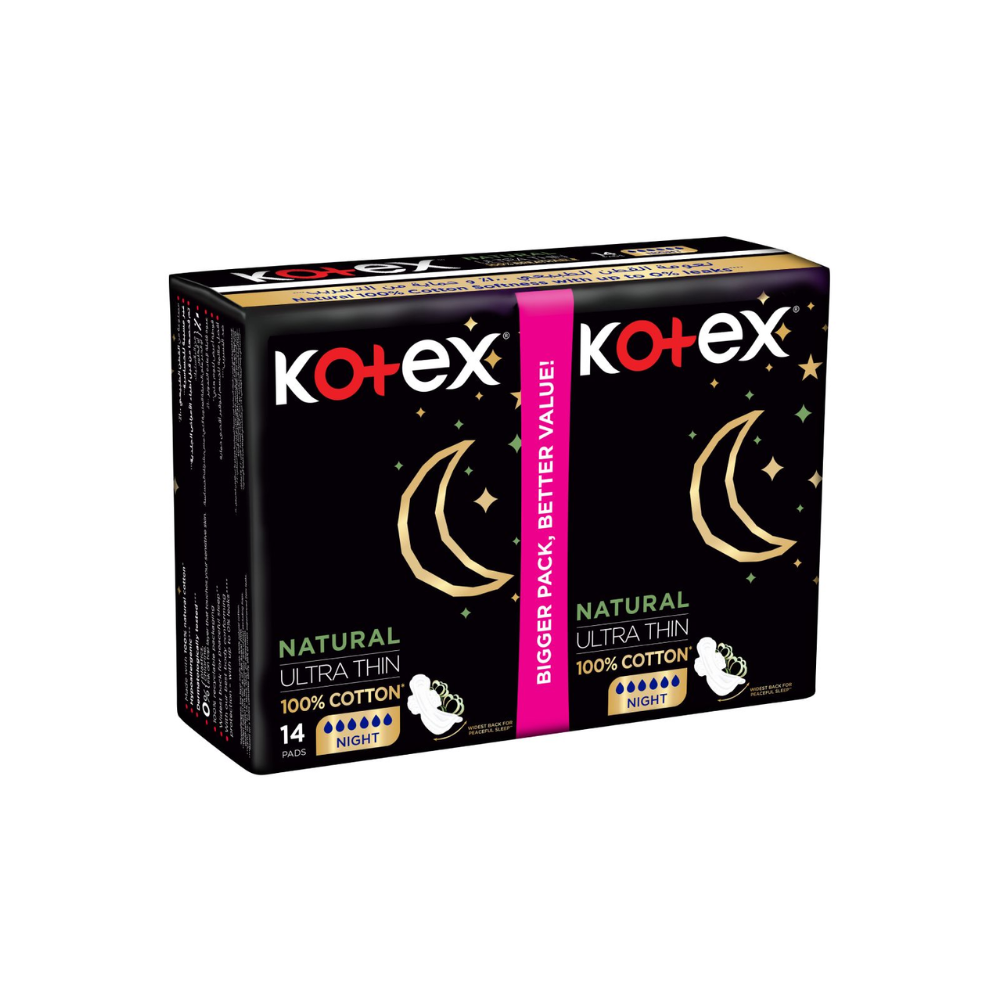 الوصف: فوط طبيعية ليلية رفيعة من كوتيكس توفر لك الراحة والأمان خلال ساعات الليل بفضل تصميمها المتطور والمريح. تحتوي العبوة على 14 فوطة مصممة خصيصًا لتوفير حماية فعالة ضد التسرب أثناء النوم، مما يتيح لكِ النوم براحة دون القلق من أي تسربات.