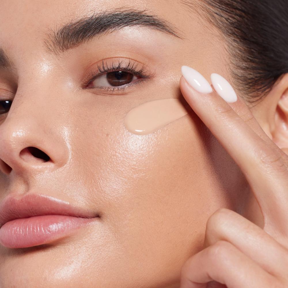ضعي كمية مناسبة من كريم الأساس على البشرة النظيفة والمرطبة.