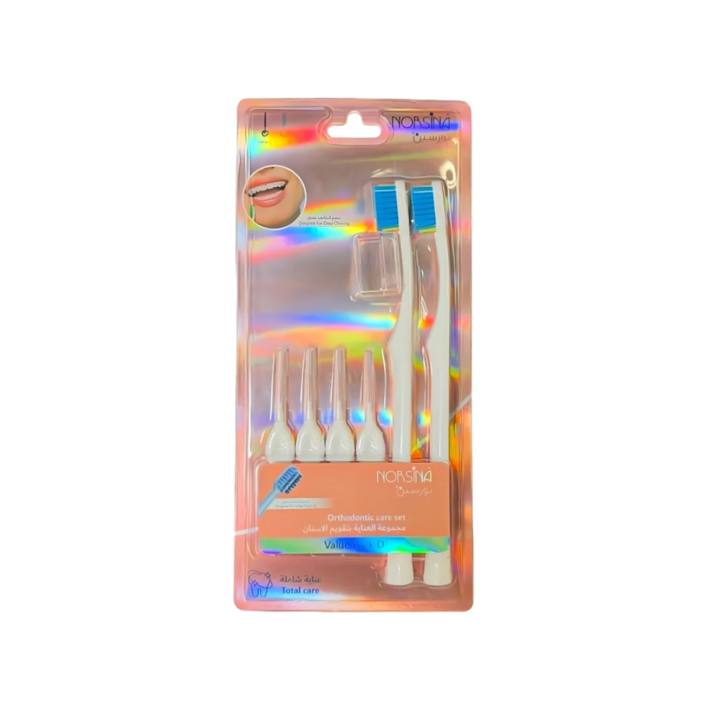 استمتعي بعناية فموية متكاملة مع مجموعة العناية بتقويم الأسنان D من نورسينا، المصممة خصيصًا للحفاظ على نظافة الأسنان واللثة أثناء فترة التقويم. تحتوي هذه المجموعة على أدوات متخصصة تساعد في تنظيف الأسنان بعمق وإزالة بقايا الطعام من المناطق التي يصعب الوصول إليها، مما يحمي من تراكم الجير والبلاك ويمنح ابتسامة صحية ومنتعشة.
