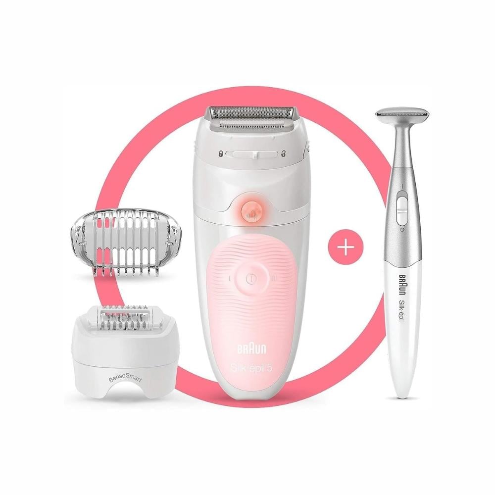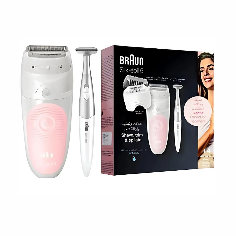 مكينة إزالة شعر سيلك ابيل 5 مع 4 قطع ملحقة ومكينة تحديد شعر SES5-820 من براون