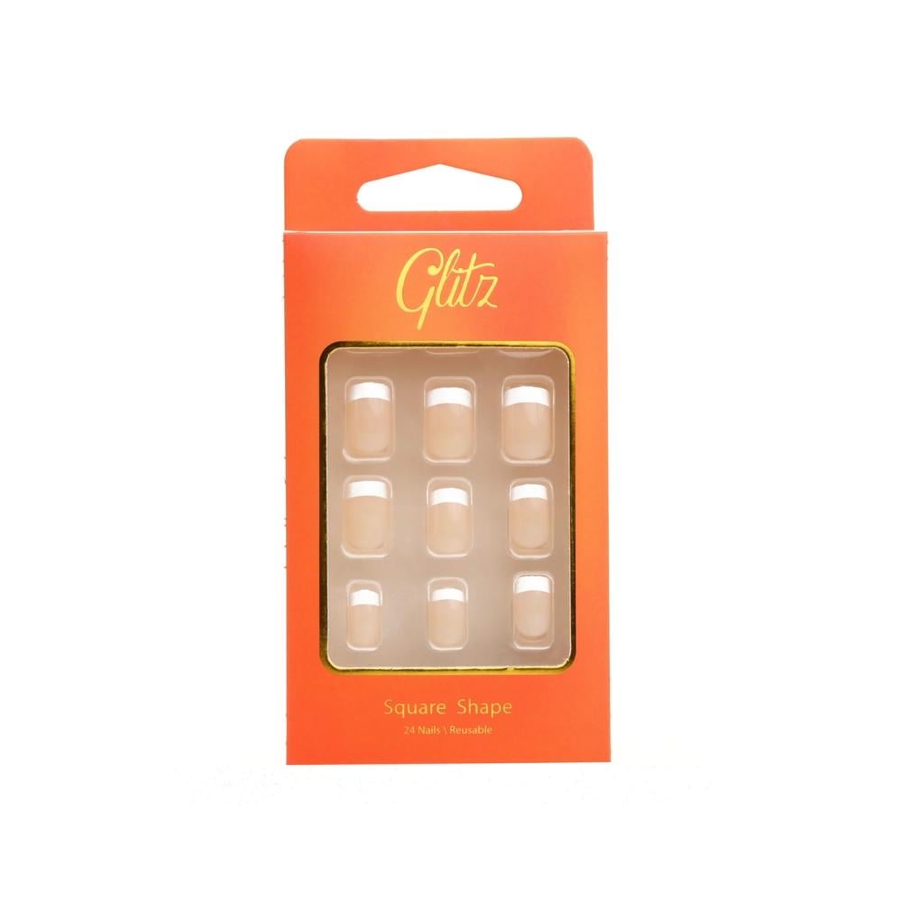 أظافر جليتز الصناعية ذات اللصق الذاتي باللون الفرنسي النود تمنحك إطلالة طبيعية وأنيقة بسرعة وسهولة.