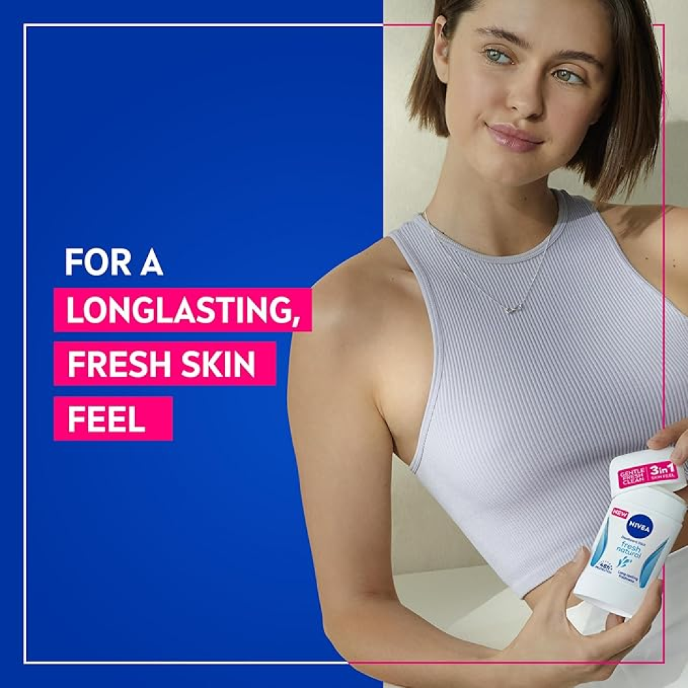 Say goodbye to sweat with Nivea's refreshing natural deodorant for a feeling of freshness all day long. With marine extracts to make your underarm skin soft and uniform in color, it provides longer protection from sweating and superior care for your skin that lasts for 48 hours so you can enjoy a pleasant and refreshing scent.