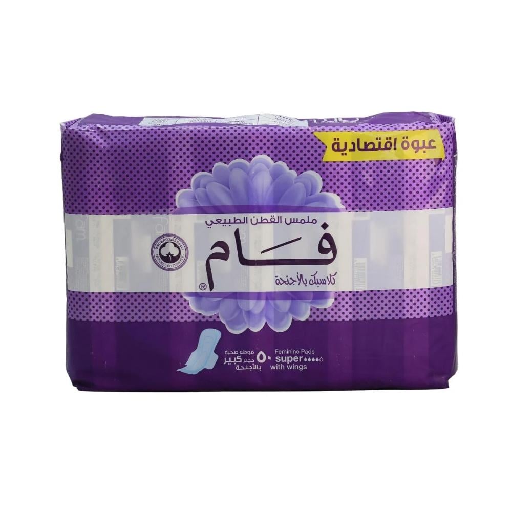 Fam Large Sanitary Pads with Wings - 50 Pads (Economy Pack)